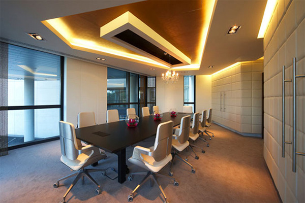 另外不同的辦公空間,譬如會議廳,應該不能有干擾的雜音以及會轉移人注意力的視覺圖案,又譬如經理廳得有保密的功能,還有財務室應該得有防盜的功能等等。通過不同的空間來延伸出符合人性的設計,最終將達到人與之和諧統一。